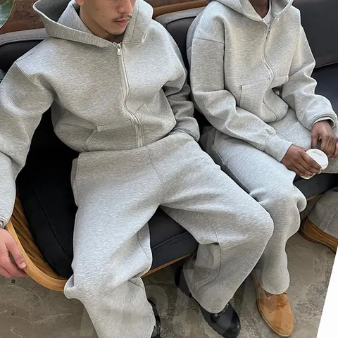 Hoodies dos homens de alta qualidade Sweatshirts Zipper Hoodie e Sweatpants Set 100% Algodão Heavyweight Tricô Personalizado Suor Homens